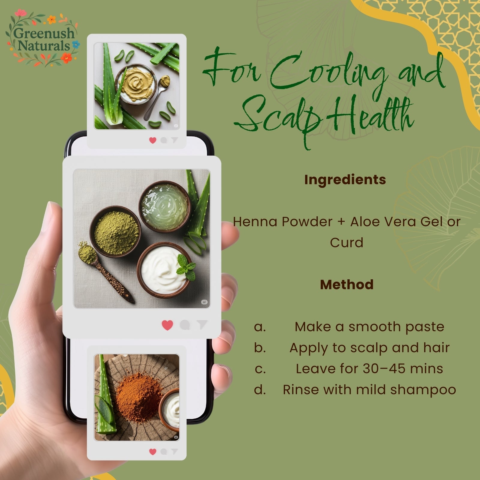 Harness the power of nature with GREENUSH NATURAL Heena Powder! Enriched with precious herbals, it not only provides vibrant color to your hair but also nourishes and strengthens them. Say goodbye to added colors and preservatives and opt for the pure goodness of Marudhani Podi, also known as Mehandi.