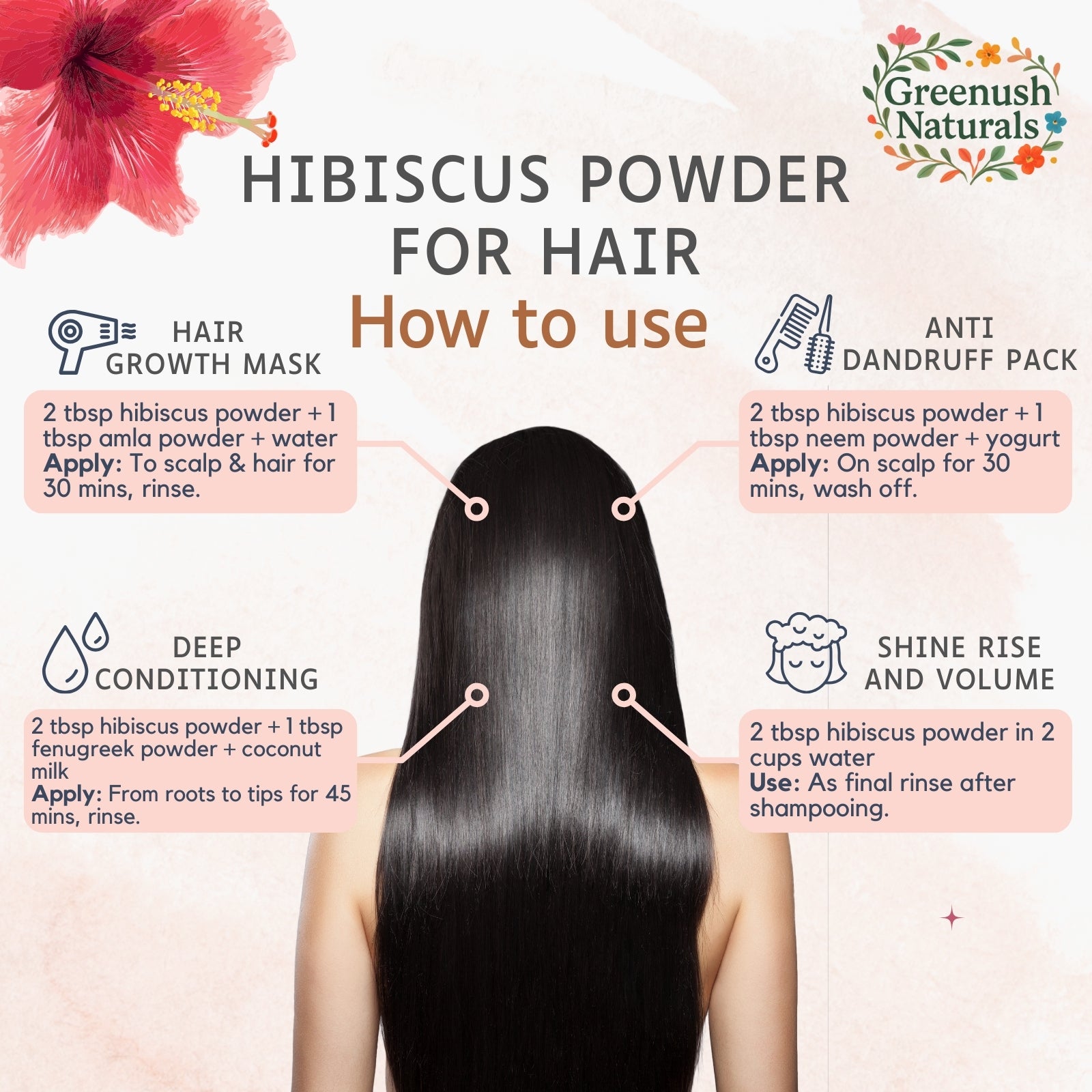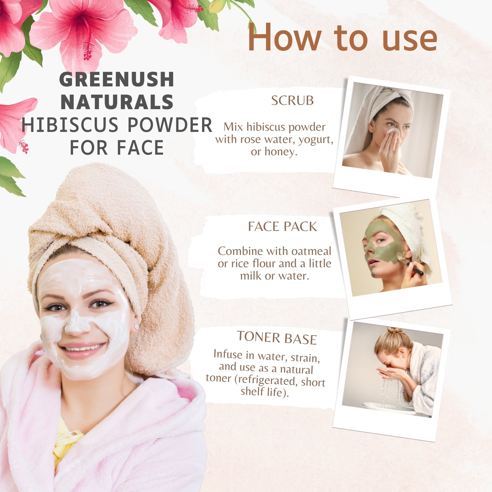 Revitalize your hair and skin with GREENUSH NATURALS Hibiscus Flower Powder. Made from natural pure hibiscus rosa-sinensis, this powder works wonders as a face pack and hair mask. Say goodbye to dull hair and dry scalp with the nourishing benefits of gudhal ka phool powder.