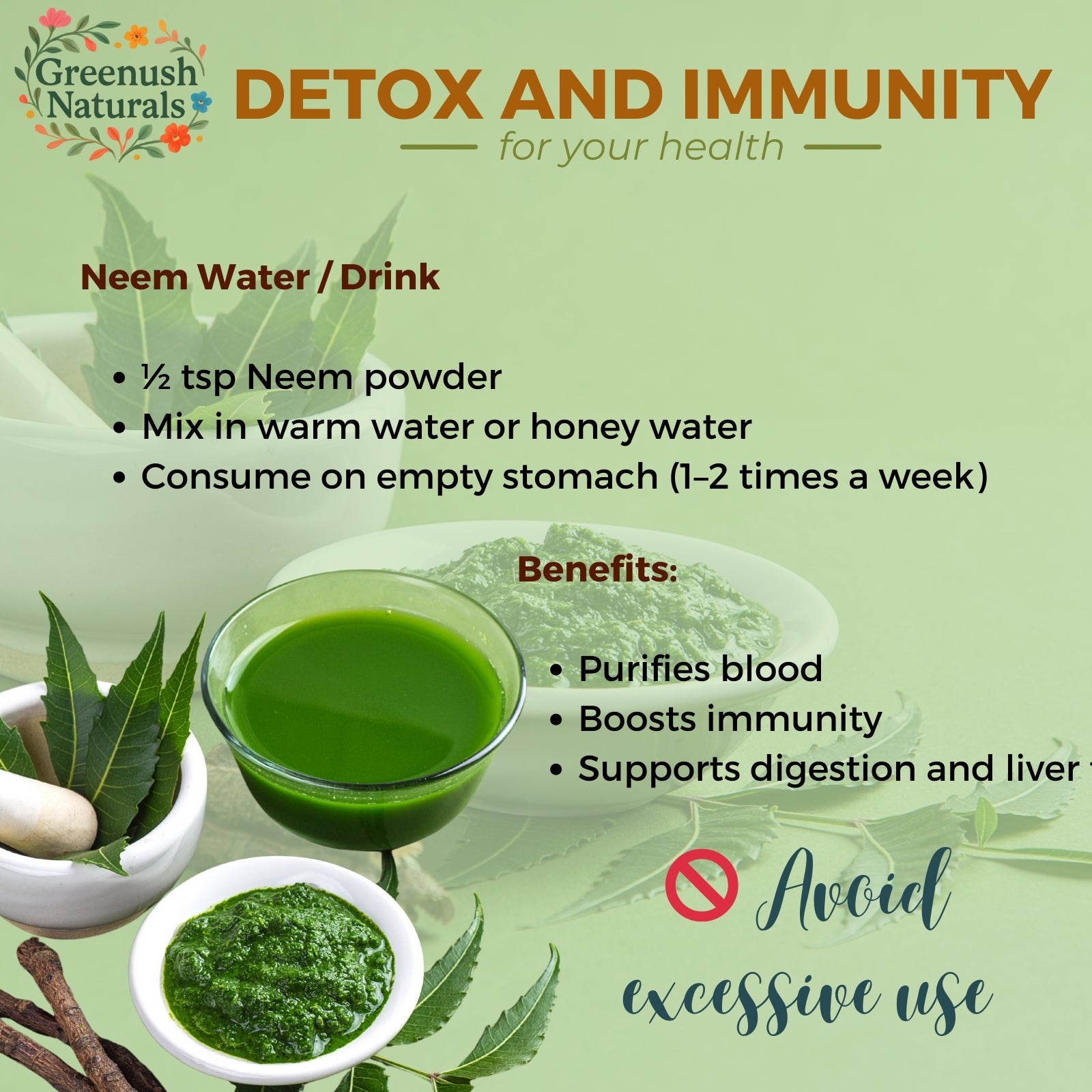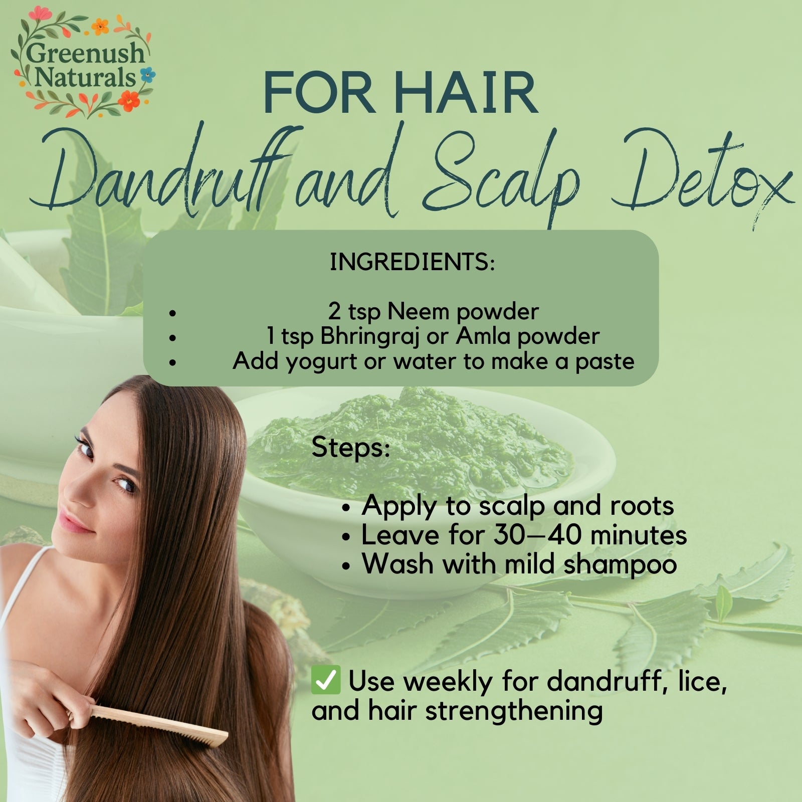 Greenush Naturals Neem Powder is a 100% pure and natural powder that offers multiple benefits for your skin and hair. It helps detoxify your skin and body, brightens your skin tone, fights dandruff and excess oil, and controls acne and pimples. Made from organic Vembu Powder, it is edible grade and free from preservatives. Experience the power of neem with Greenush Naturals Neem Powder.
