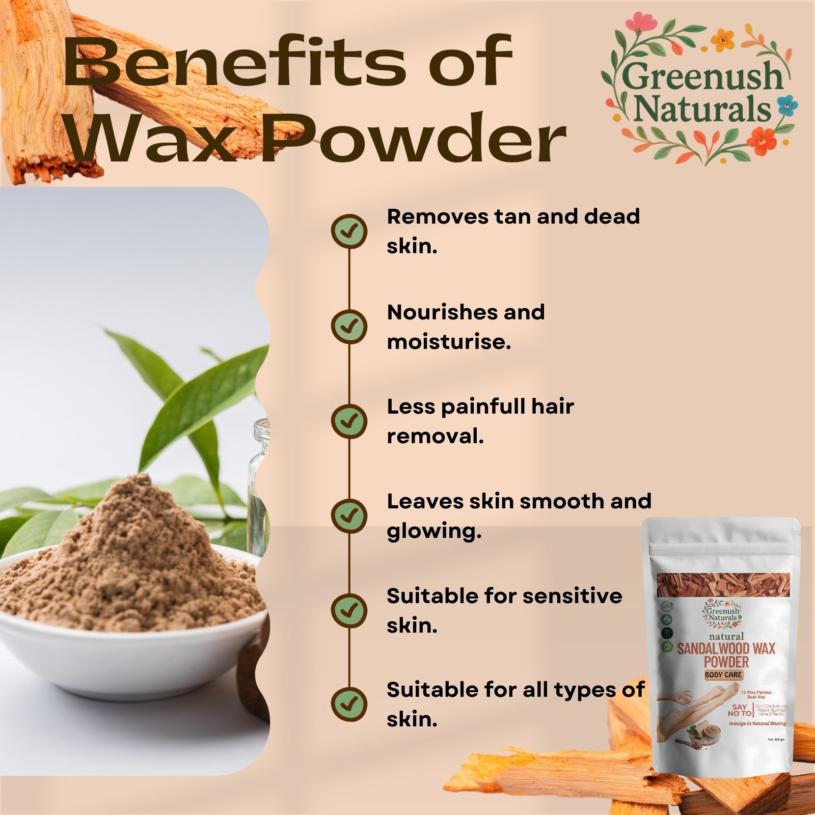Experience gentle, effective hair removal with GREENUSH NATURAL Sandalwood Wax Powder. Designed for all skin types, this natural formula removes body hair in just 10 minutes without harsh chemicals. It soothes the skin to prevent irritation and rashes, making your waxing routine painless and safe. Ideal for those seeking a pure, expert-grade solution for smooth, radiant skin.